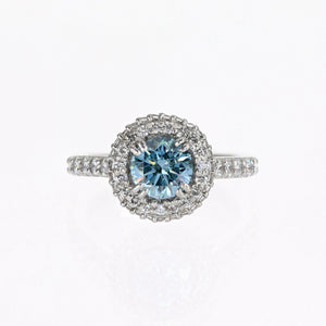 Platinum Intense Blue Round Lab-Created Diamond Ring 1.08ct Intense Blue SI1