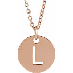 Necklace / 14K Rose / Initial L / 16-18 In / Polished / Initial Disc Necklace