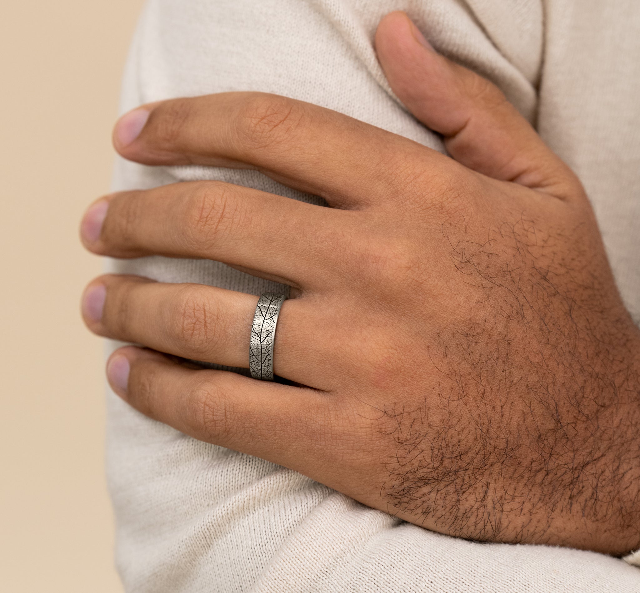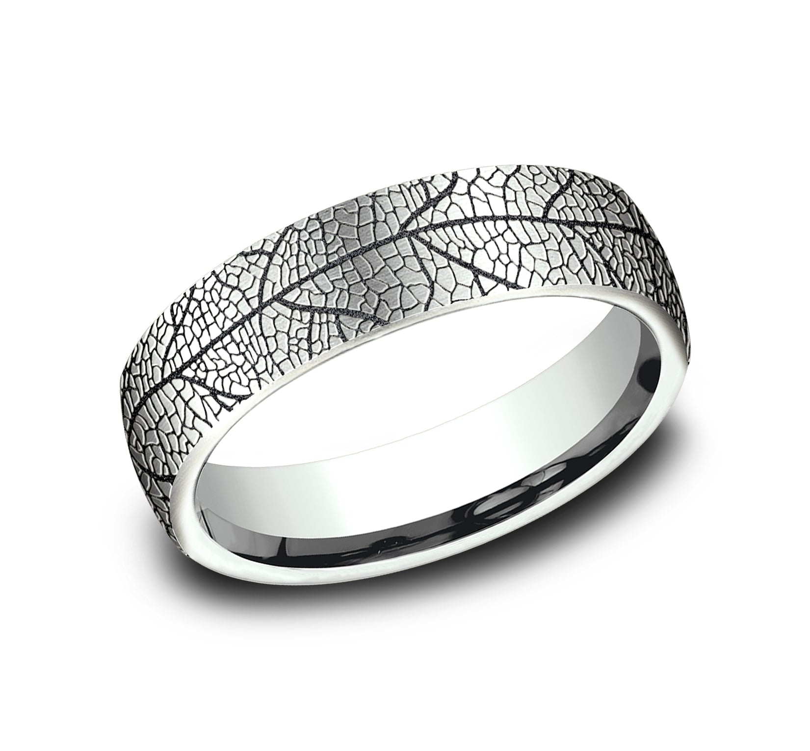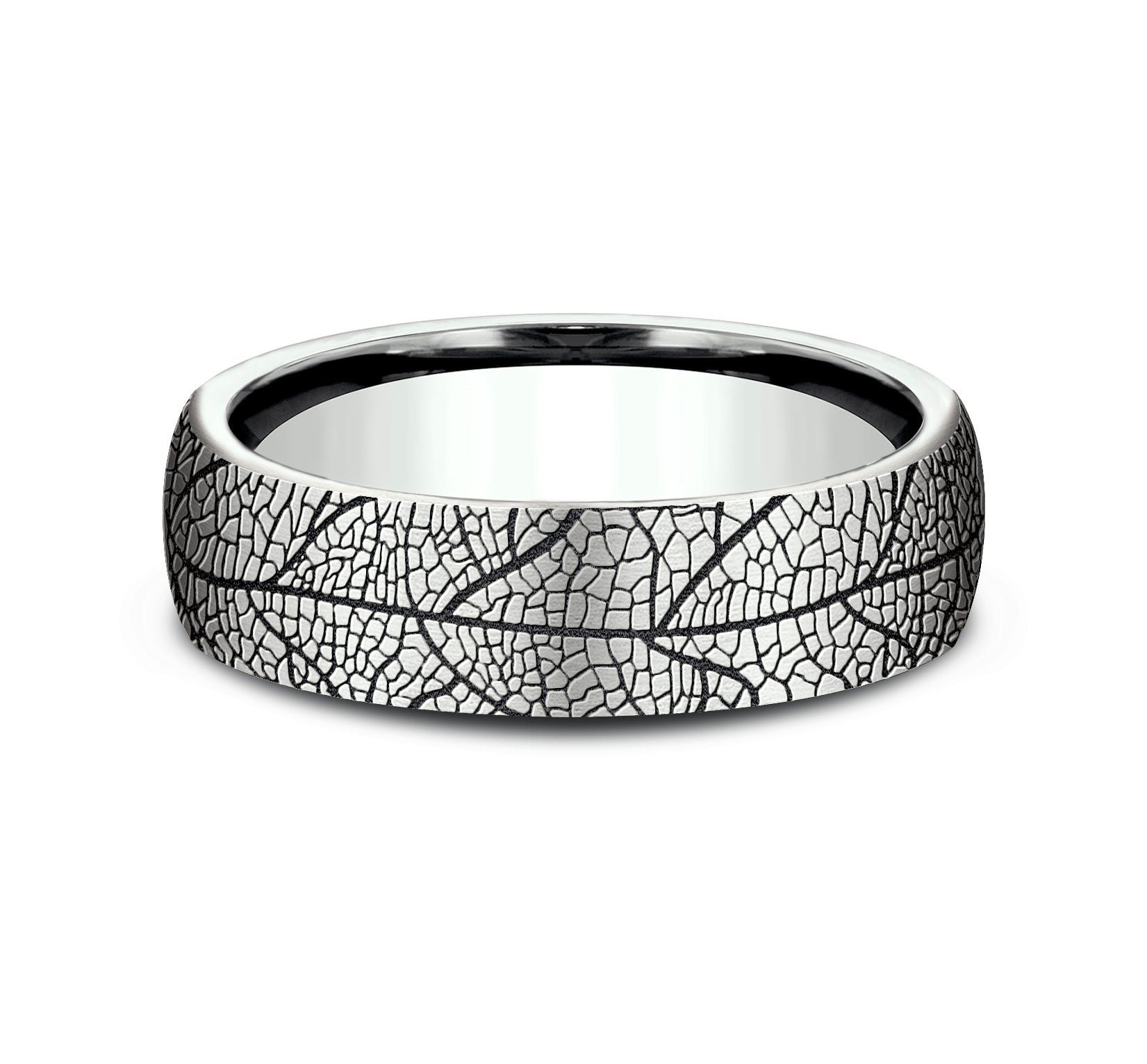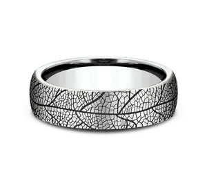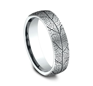 6.5mm, Comfort fit 14K White Gold Leaf pattern