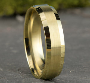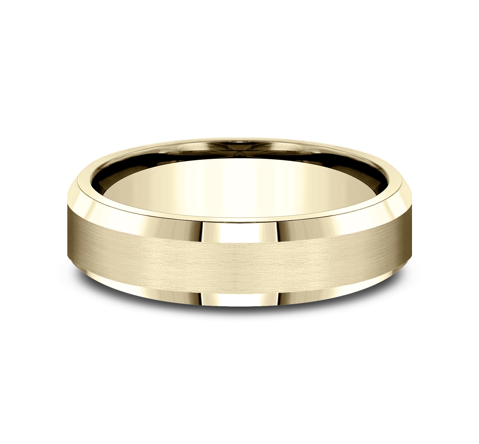 6.5mm, Lightweight comfort fit 14K Yellow Gold Satin center, polished bevel edges