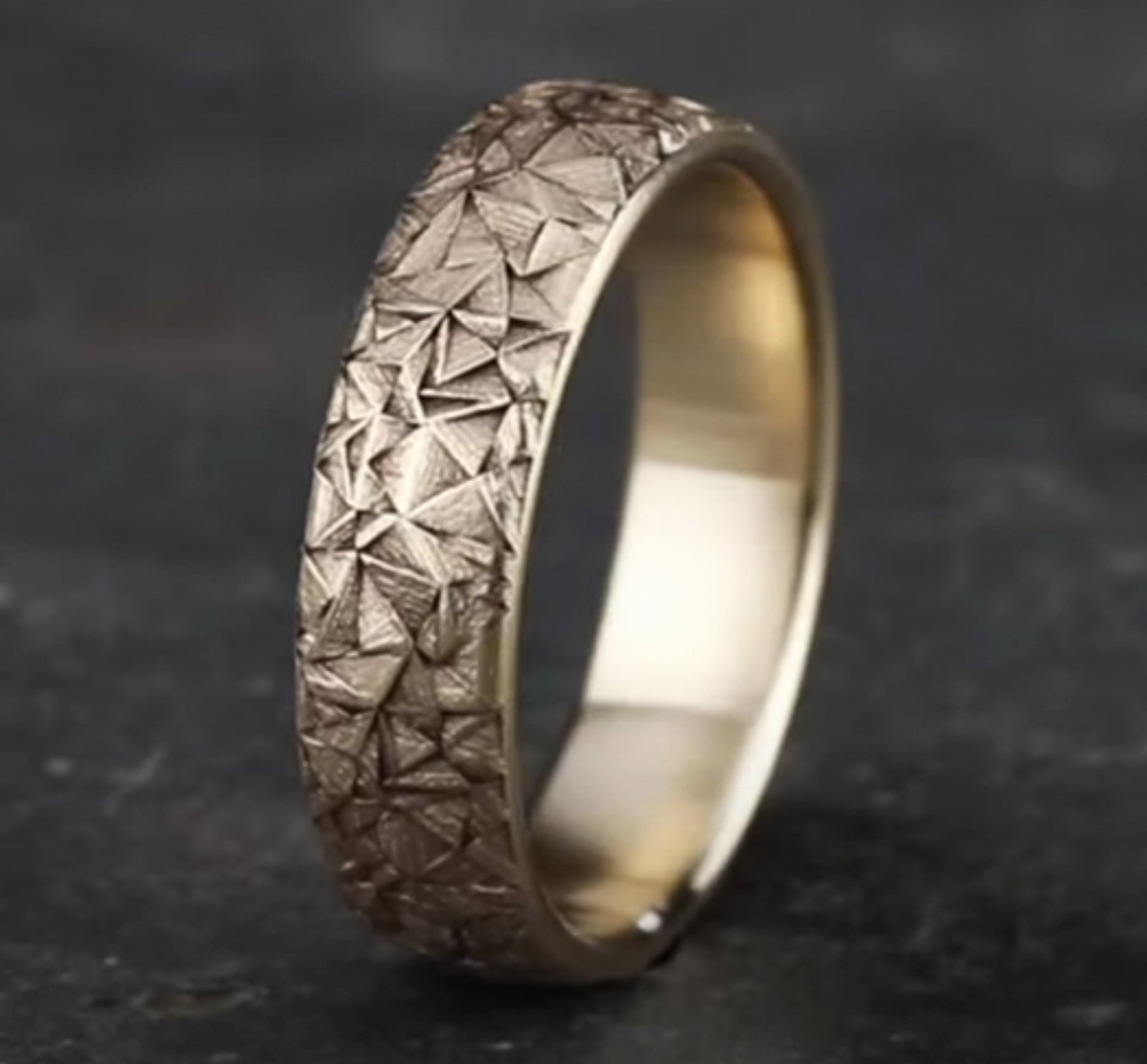 6.5mm, Comfort fit 14K Yellow Gold Kaleidoscope pattern