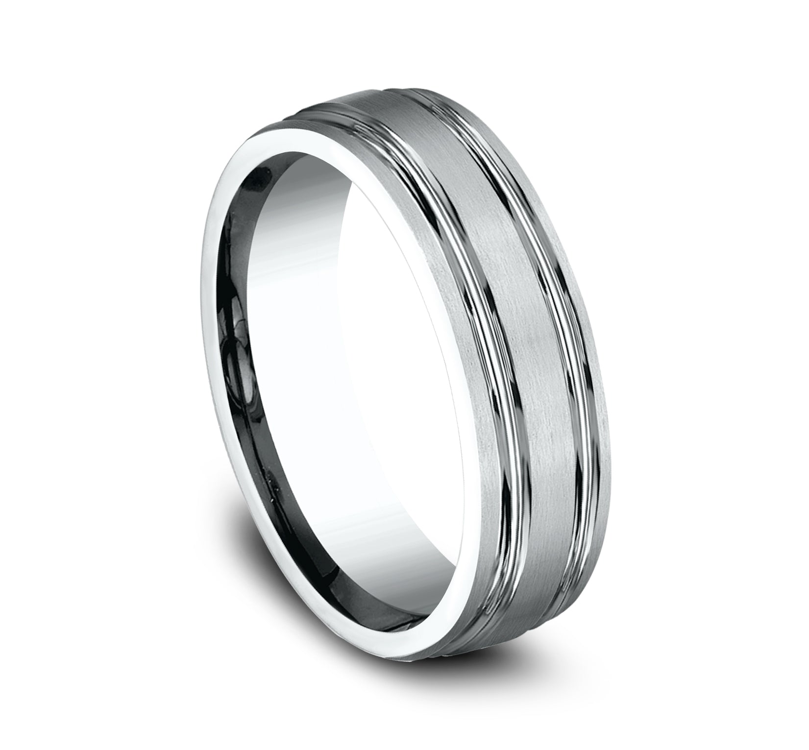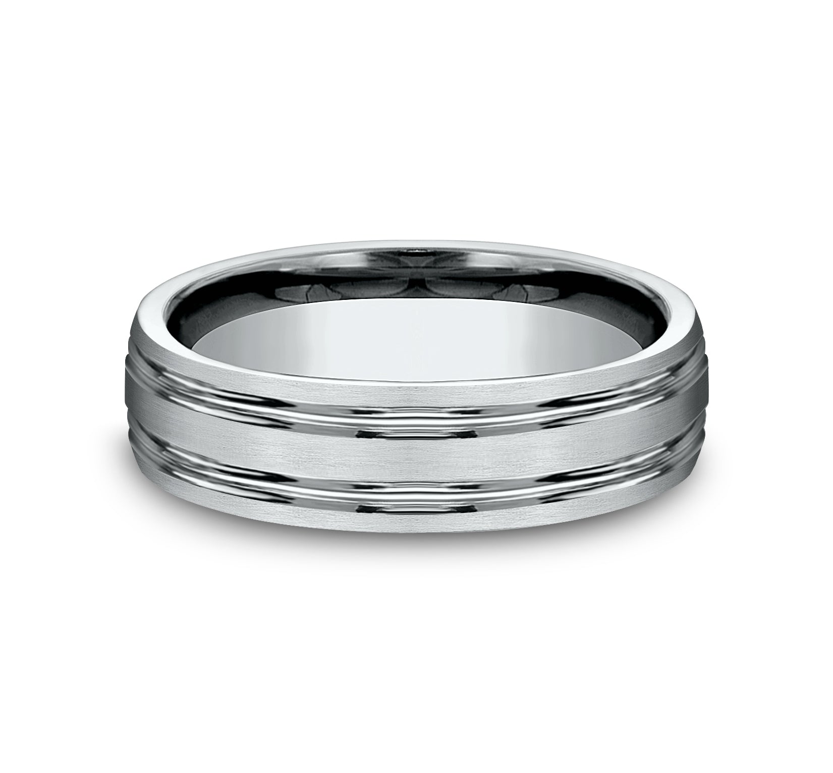 6.5mm, Lightweight comfort fit 14K White Gold Satin finish, double polished center cuts