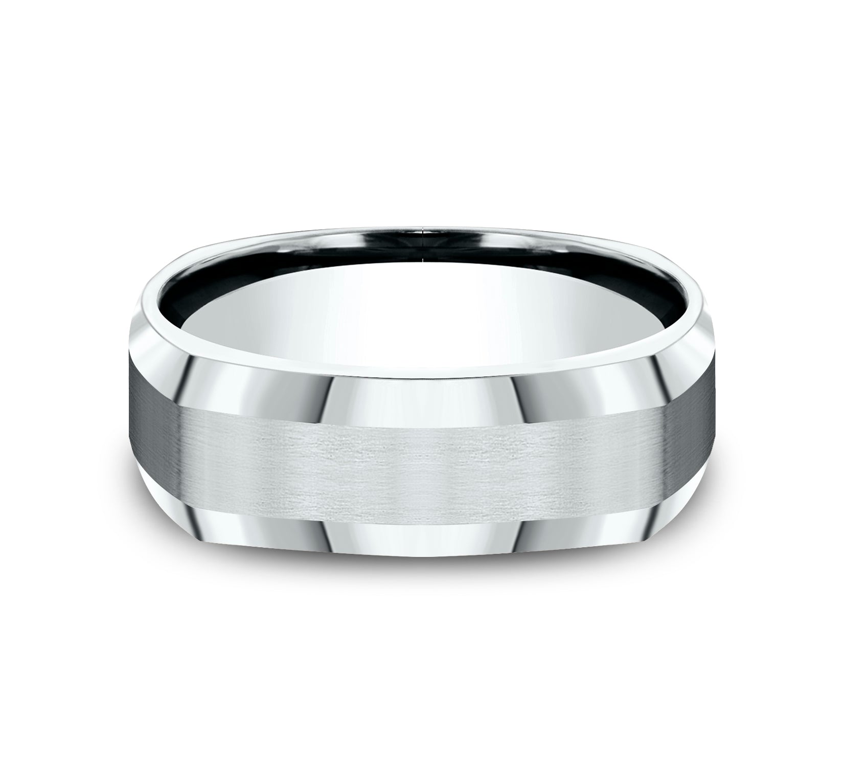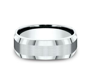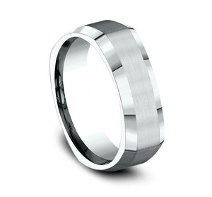 7mm, Comfort fit 14K White Gold Four sided band with satin finished center, polished bevel edges
