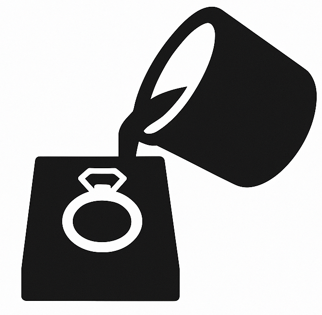 Using the lost-wax casting technique, molten metal is poured into a mold formed around the resin model to create the base of your ring.