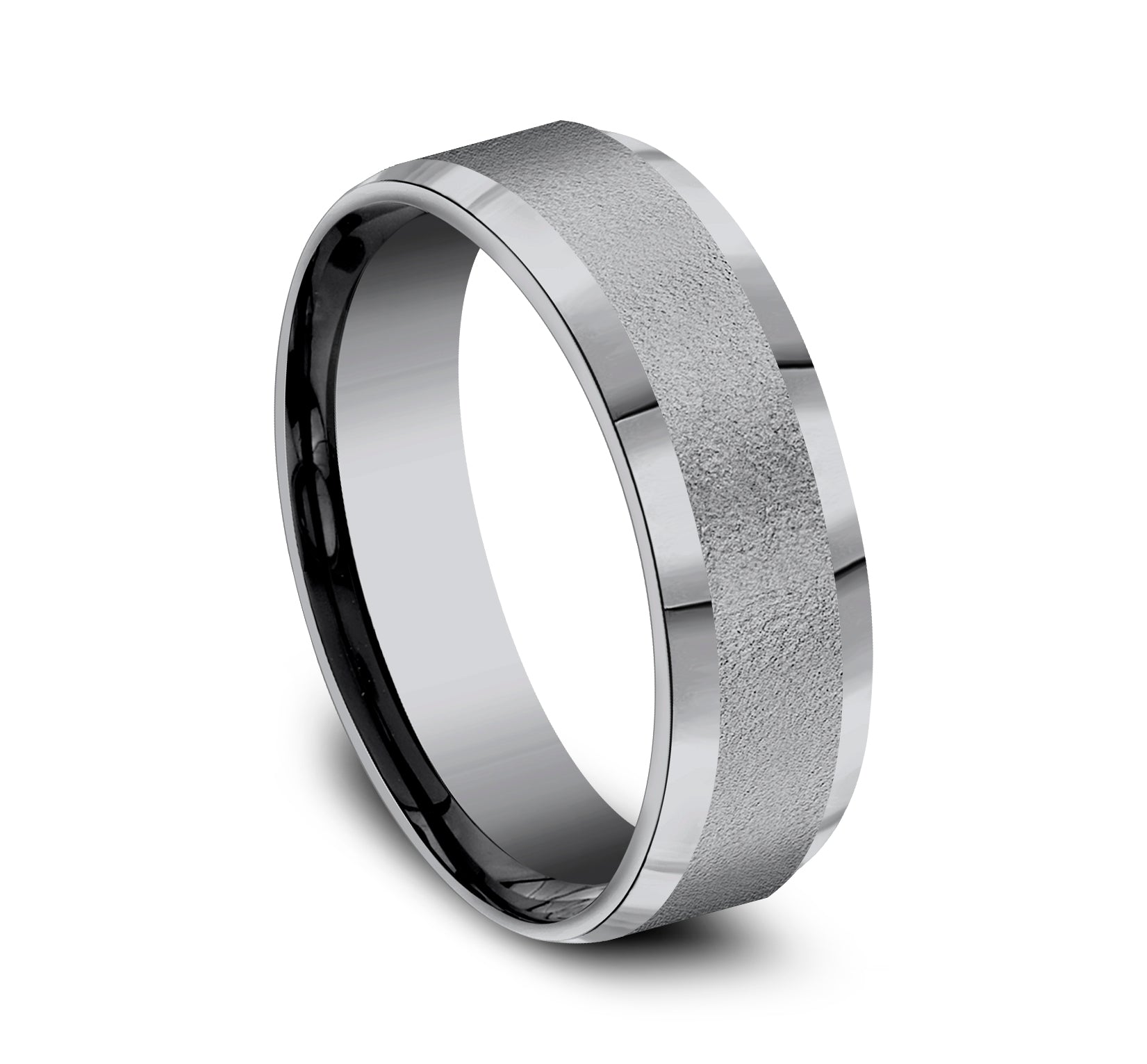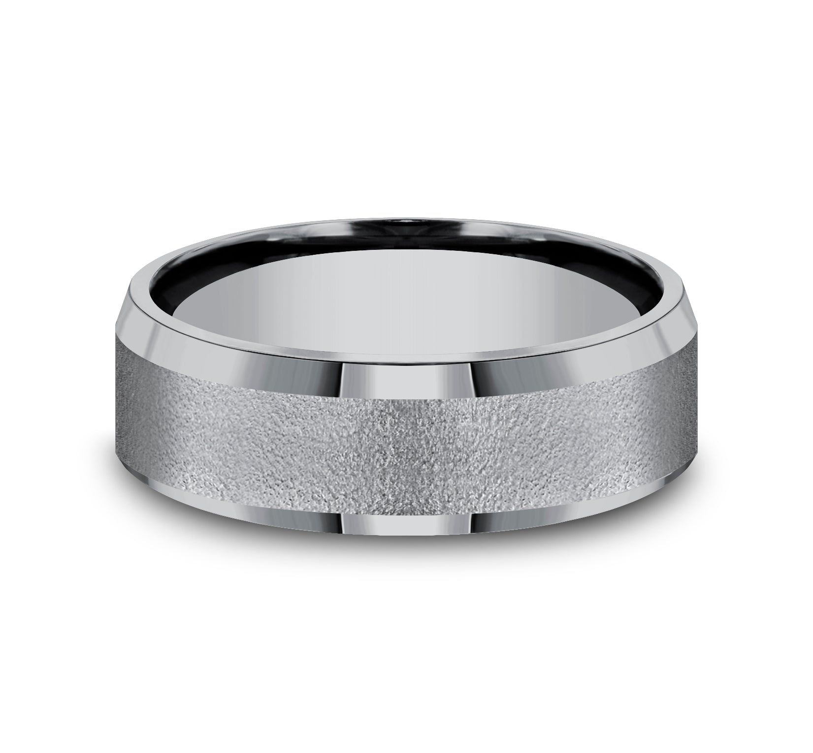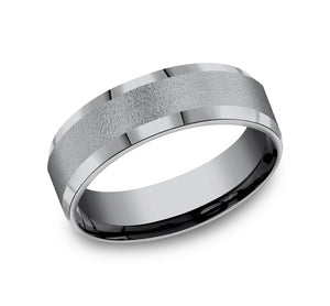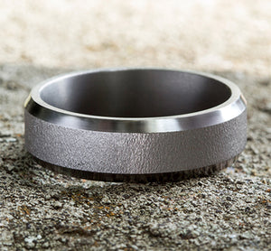 7mm, Comfort fit Grey Tantalum Wire brush center, bevel edges