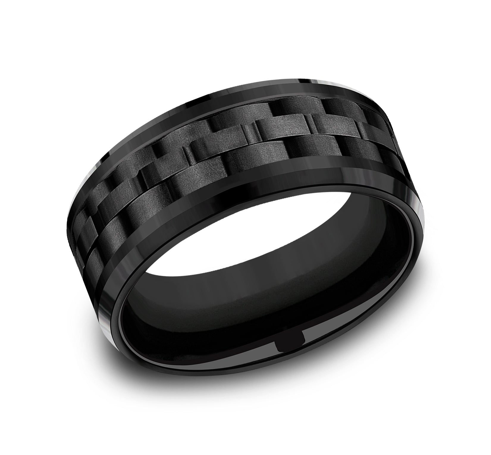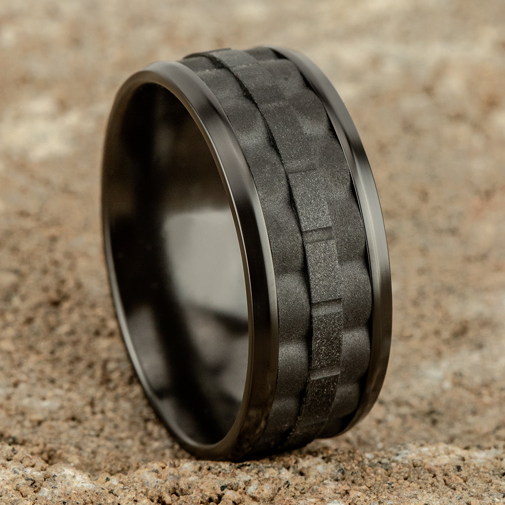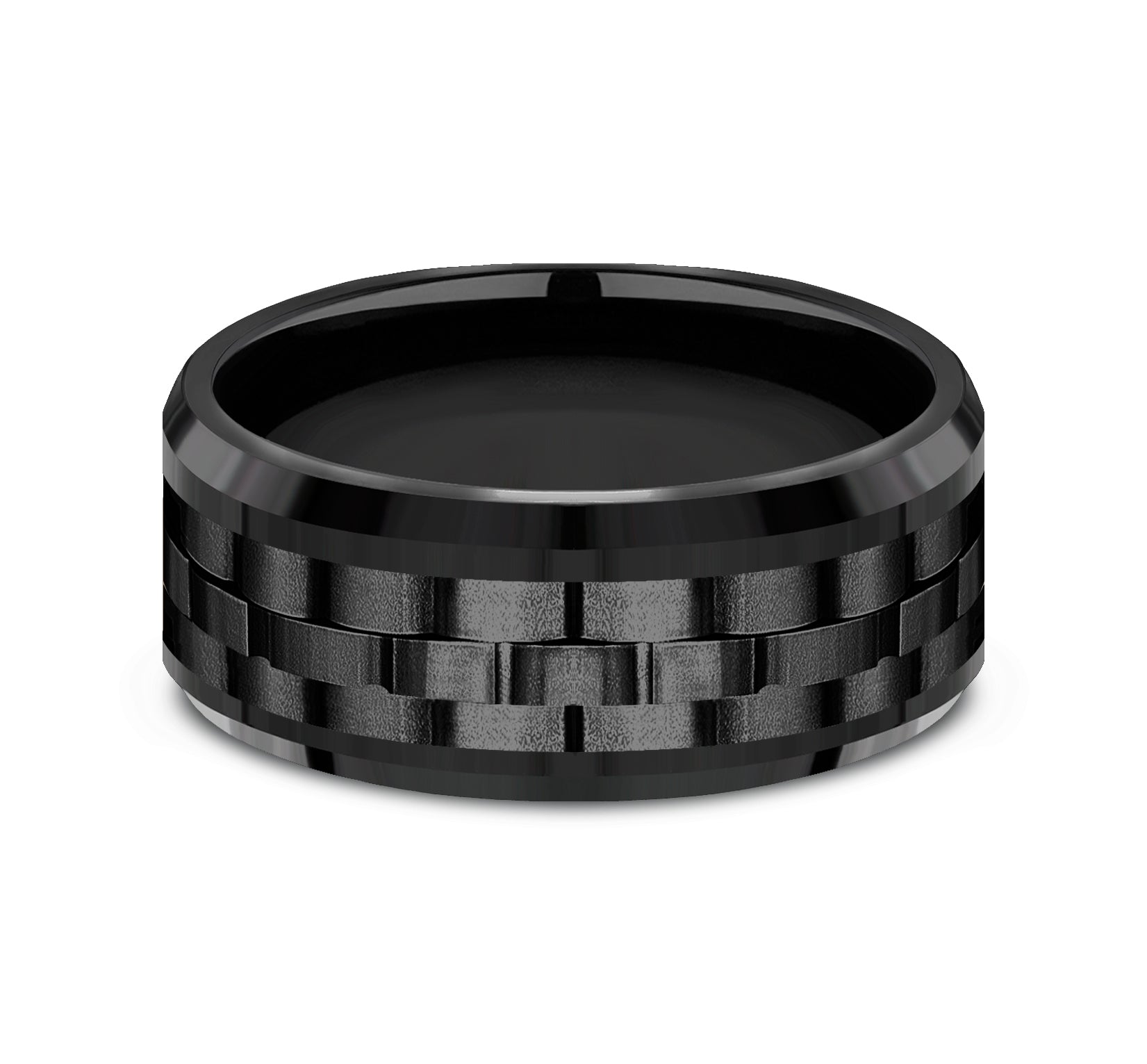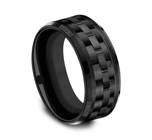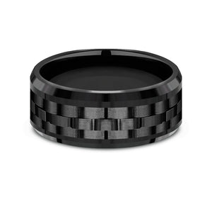 9mm, Comfort fit Black Titanium Link patterned center, polished bevel edges