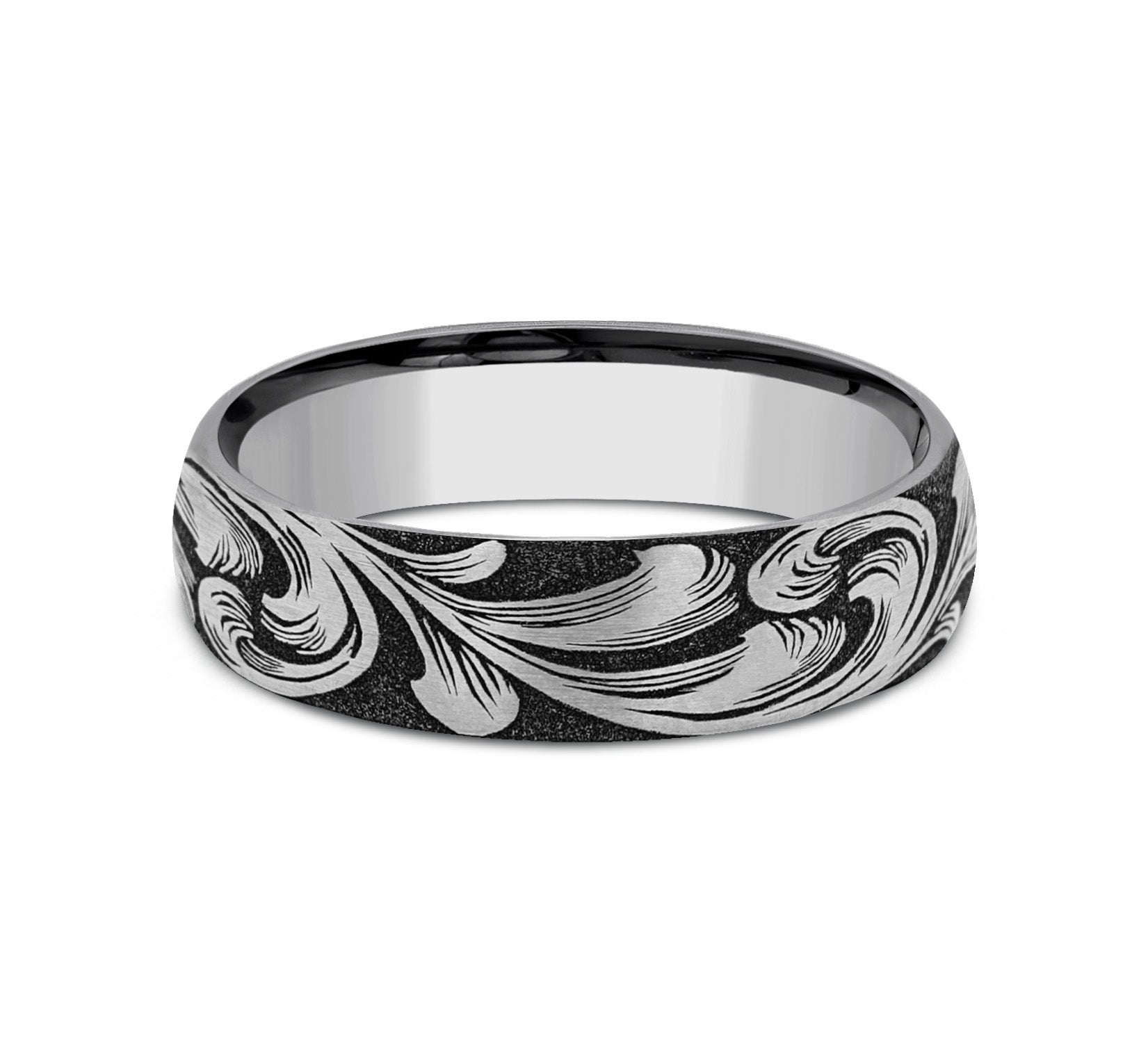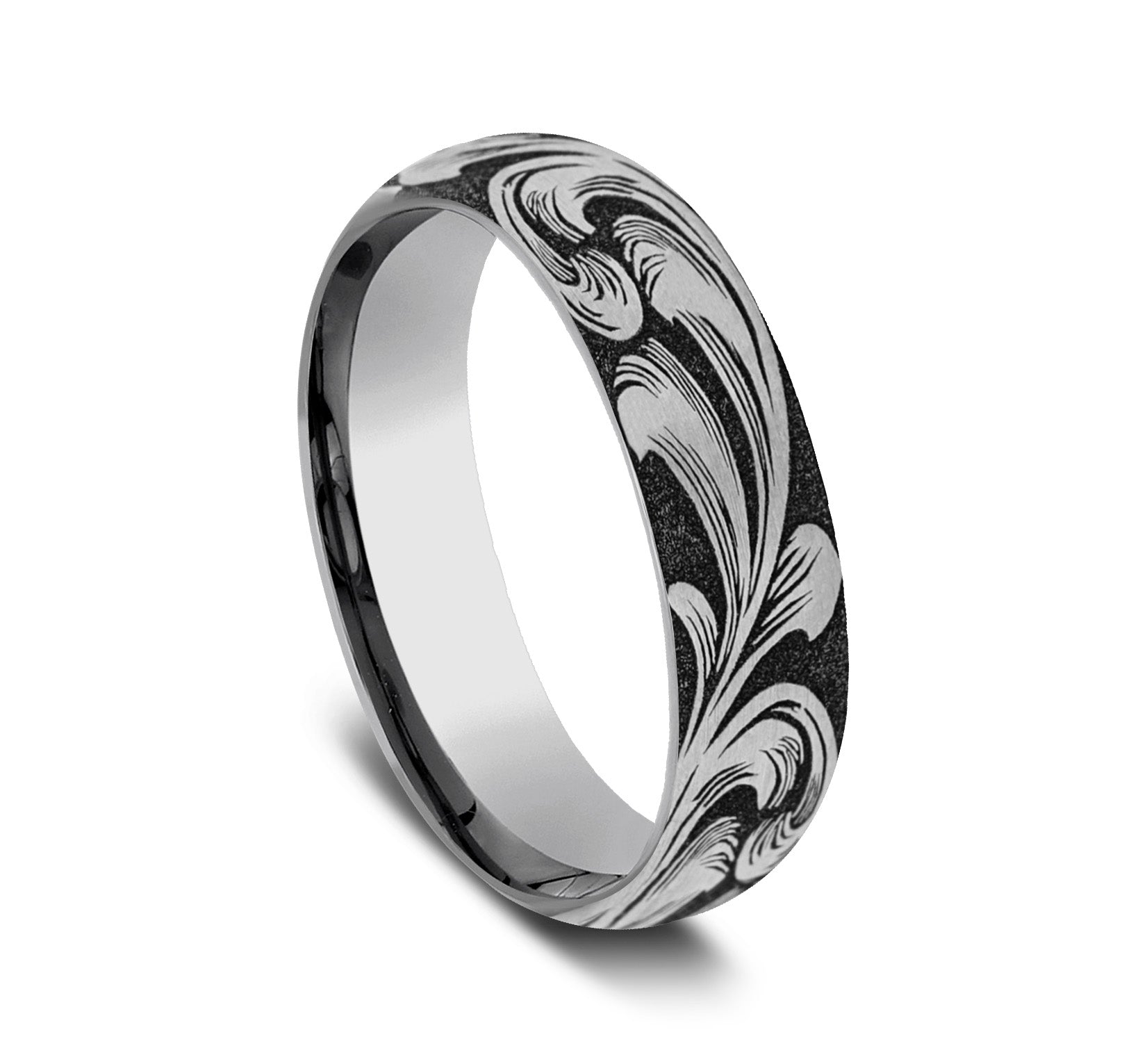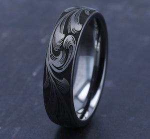 6mm, Comfort fit Tungsten Large barrel script pattern