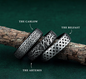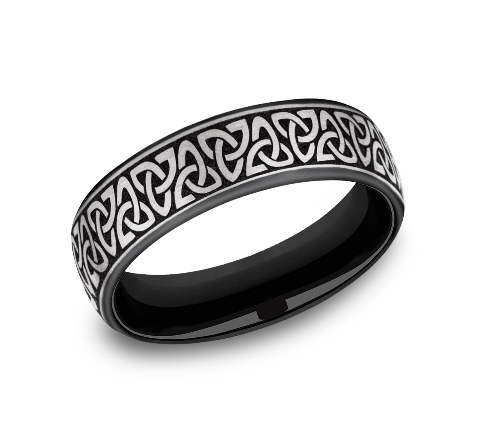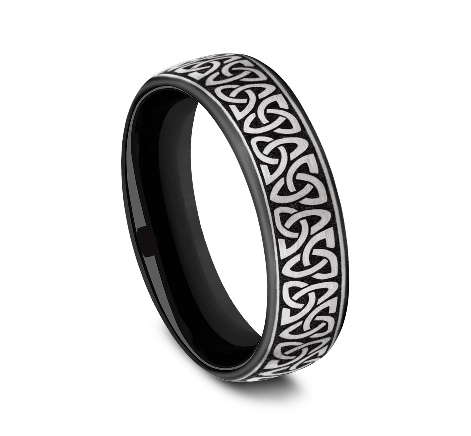 6.5mm, European comfort fit Grey/Black Titanium Celtic knot pattern
