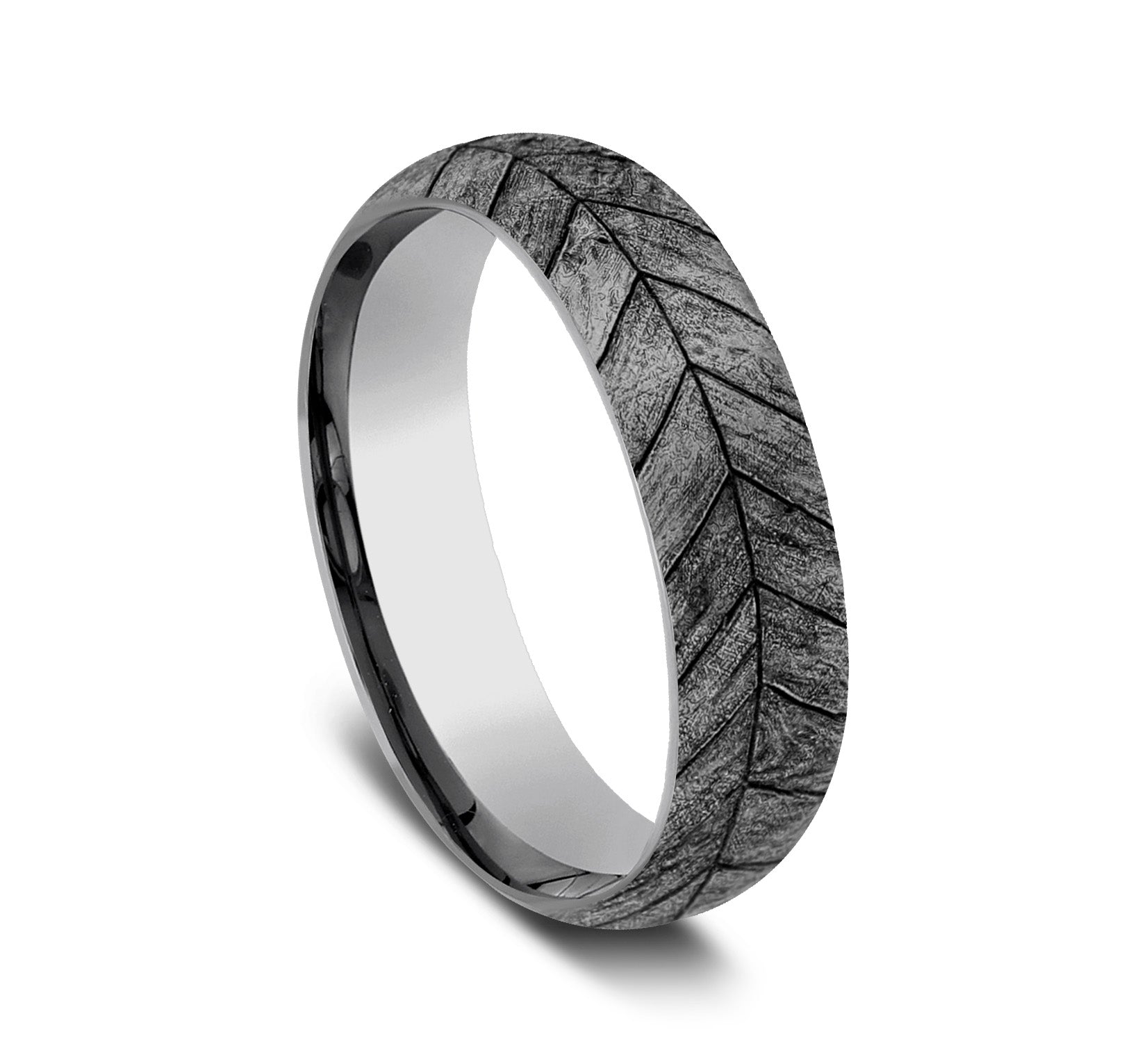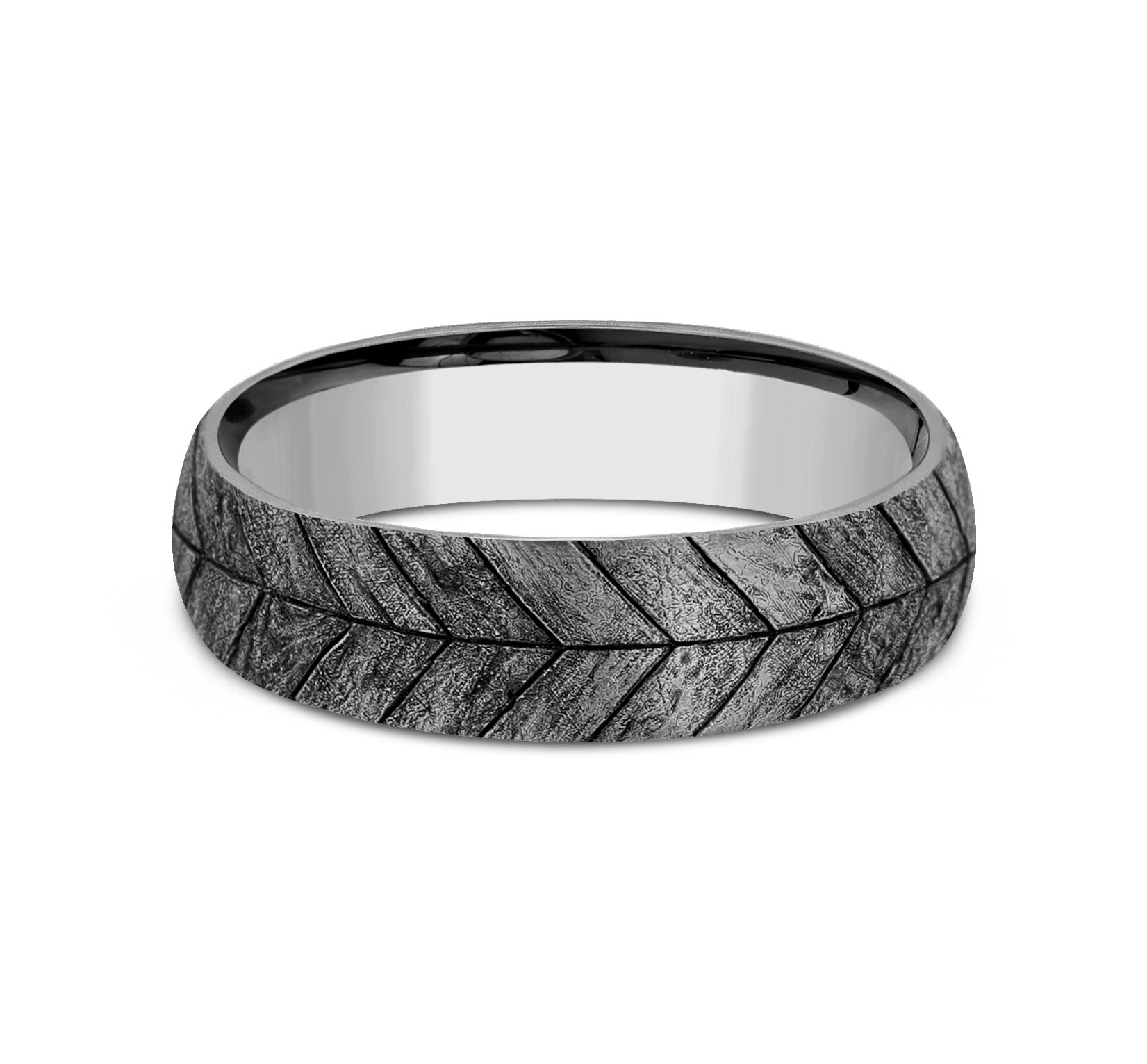 6mm, Comfort fit Tungsten Chevron wood pattern