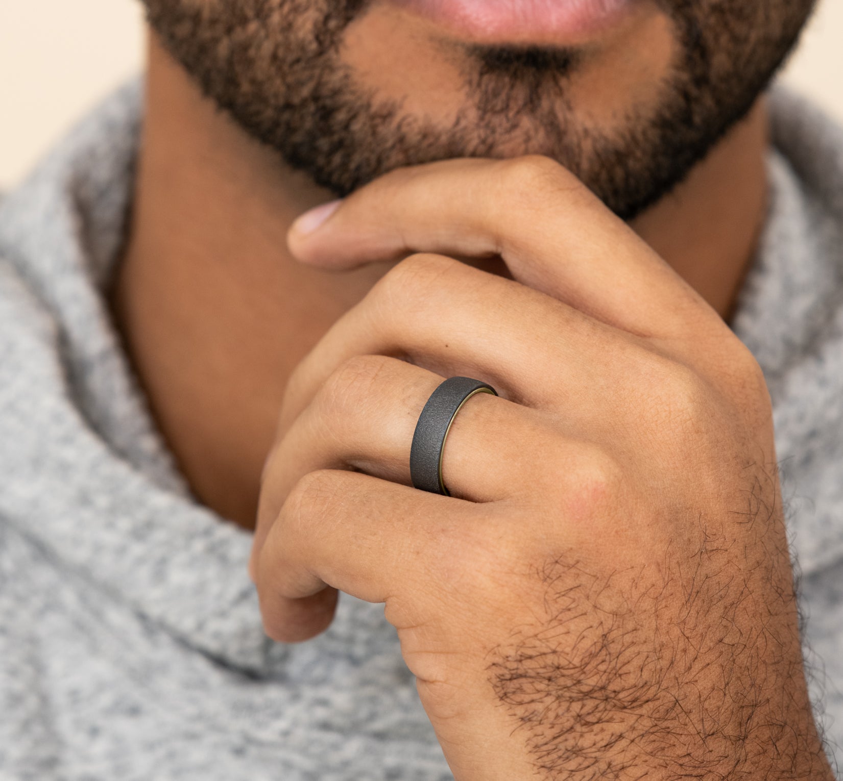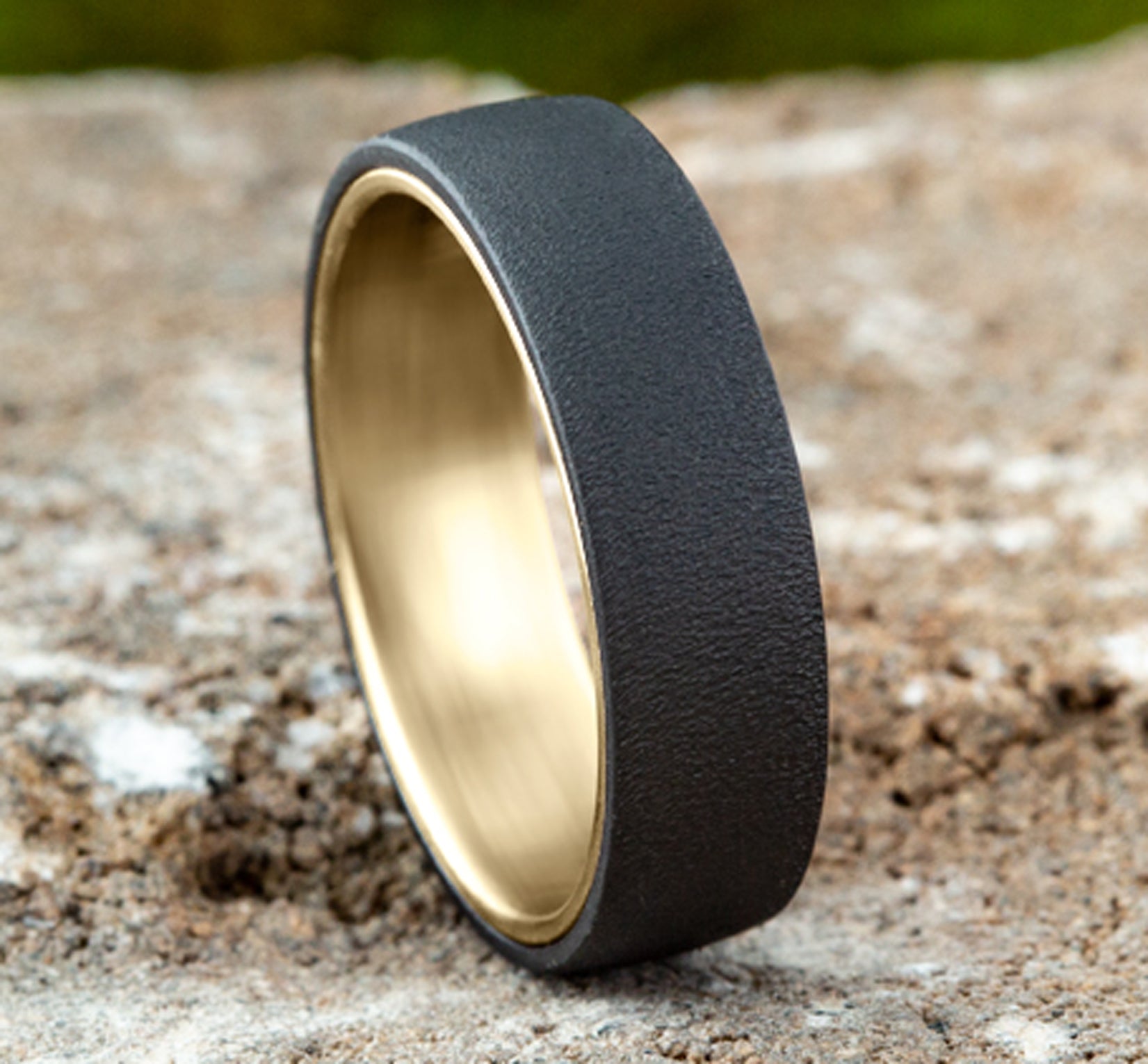 6.5mm, Comfort fit 14K Yellow Gold and Darkened Tantalum Wire brush finish