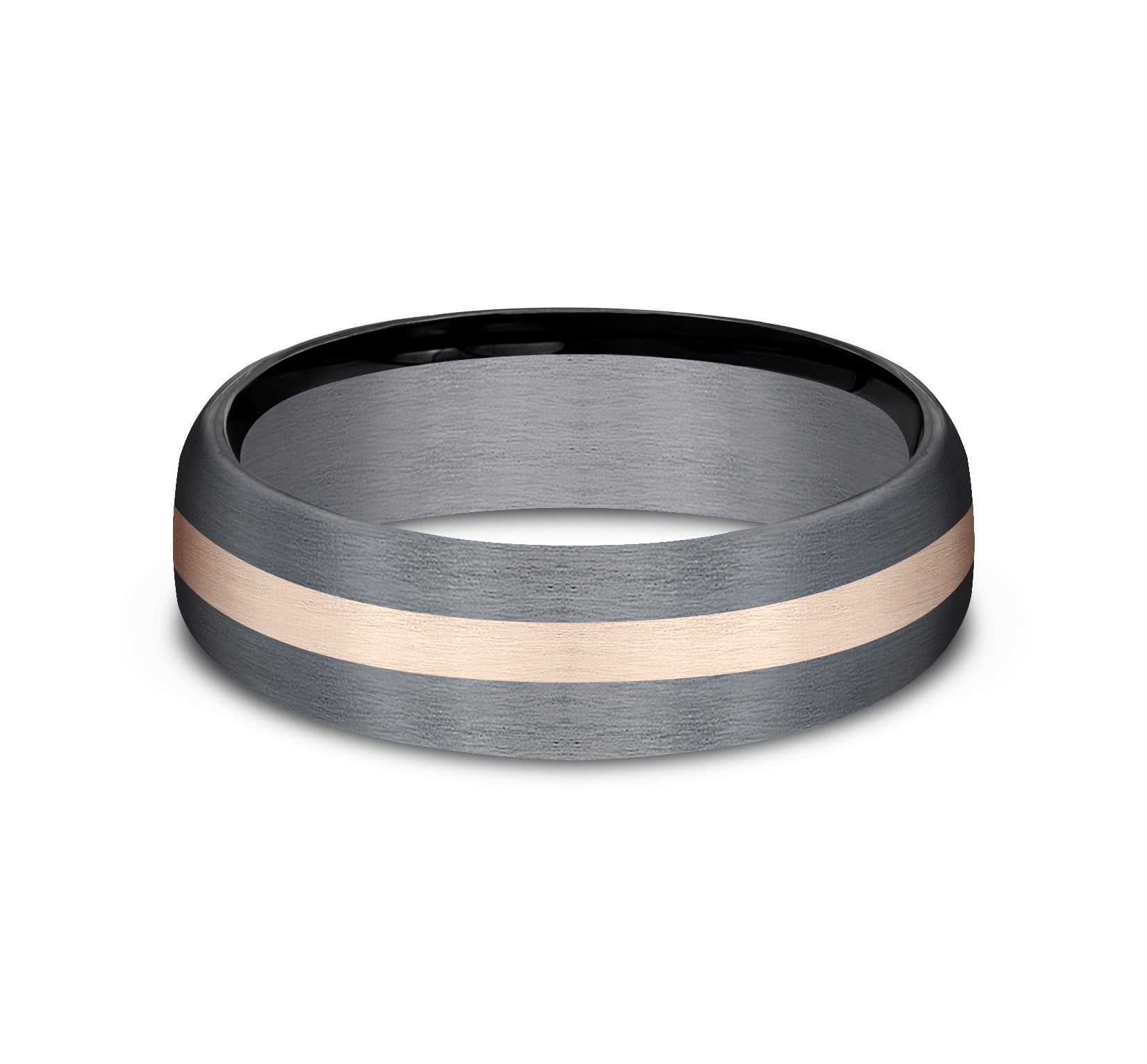 6.5mm, Grey Tantalum and 14K Rose Gold Satin finish with center stripe