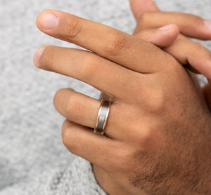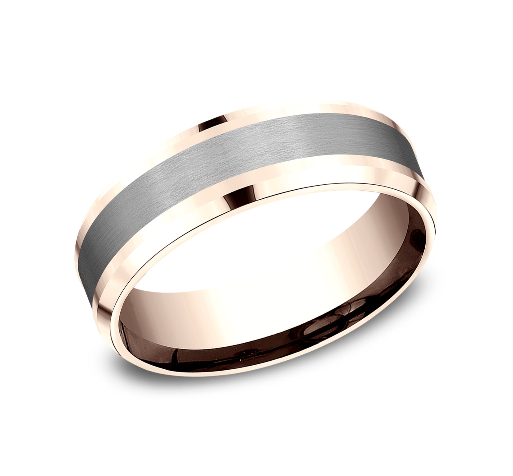 7mm, Comfort fit 14K Rose Gold and Grey Tantalum Satin center, polished bevel edges
