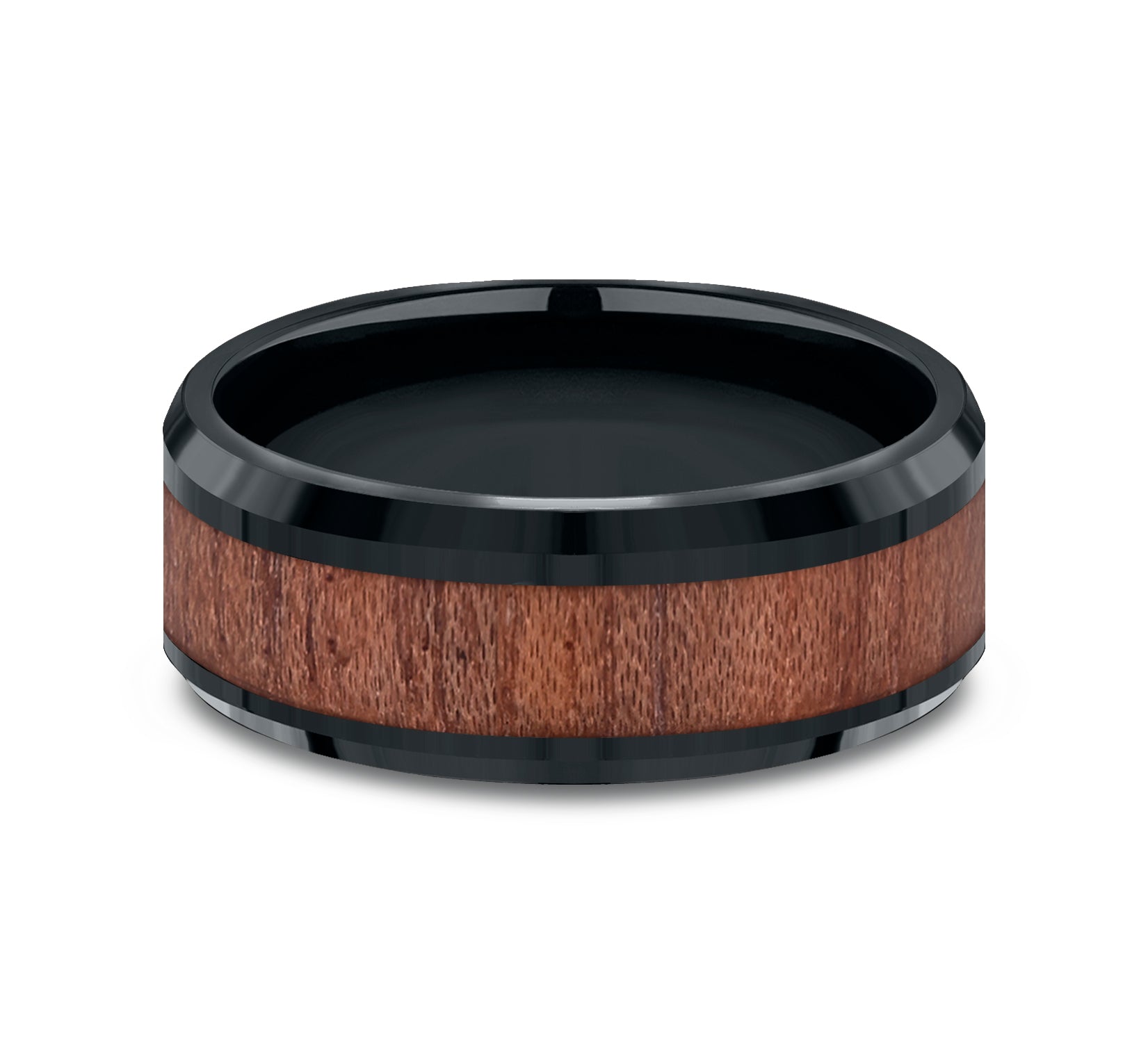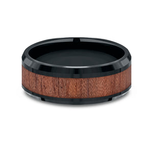 8mm, Comfort fit Black Cobalt and Wood Wooden center, polished bevel edges