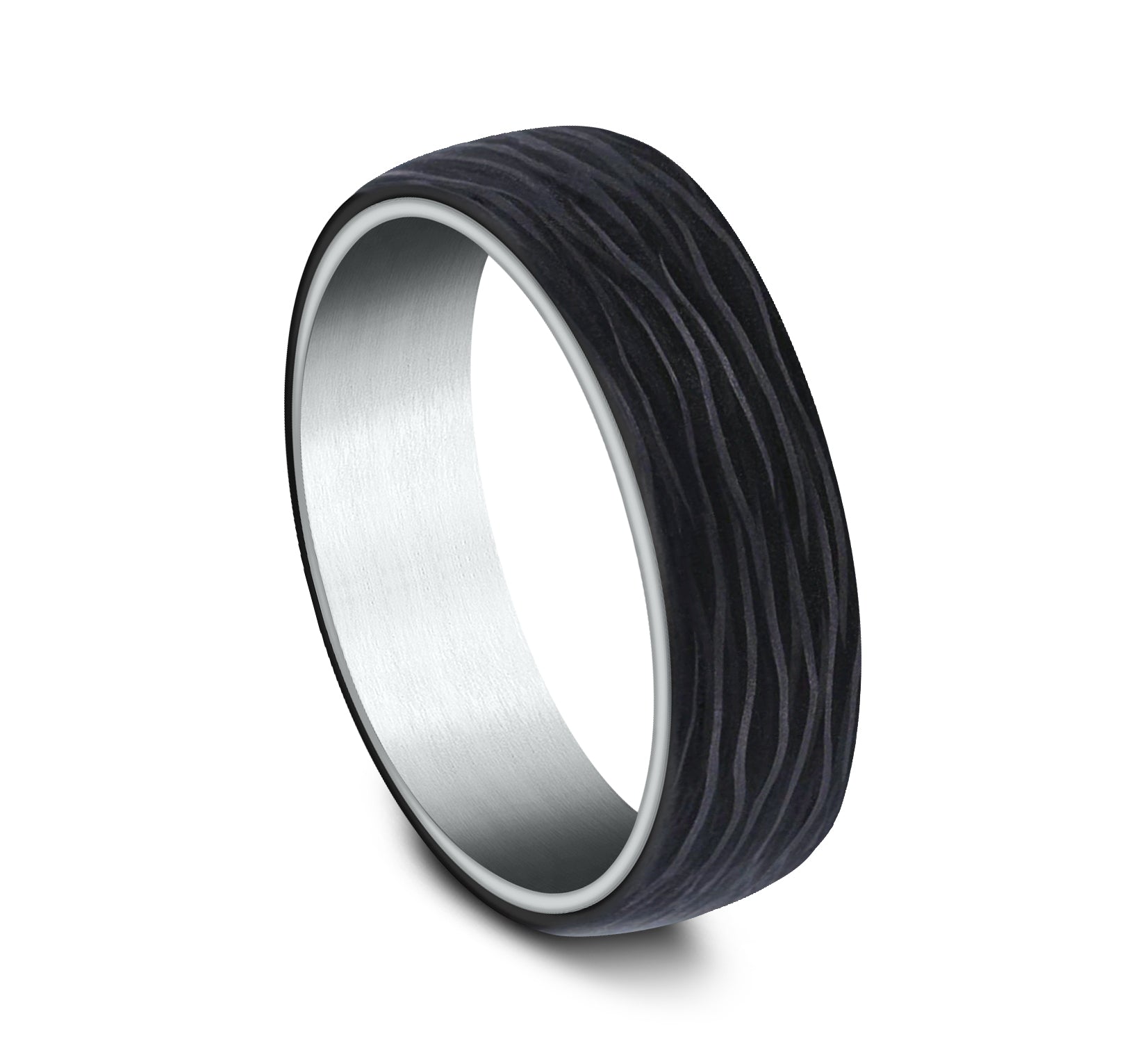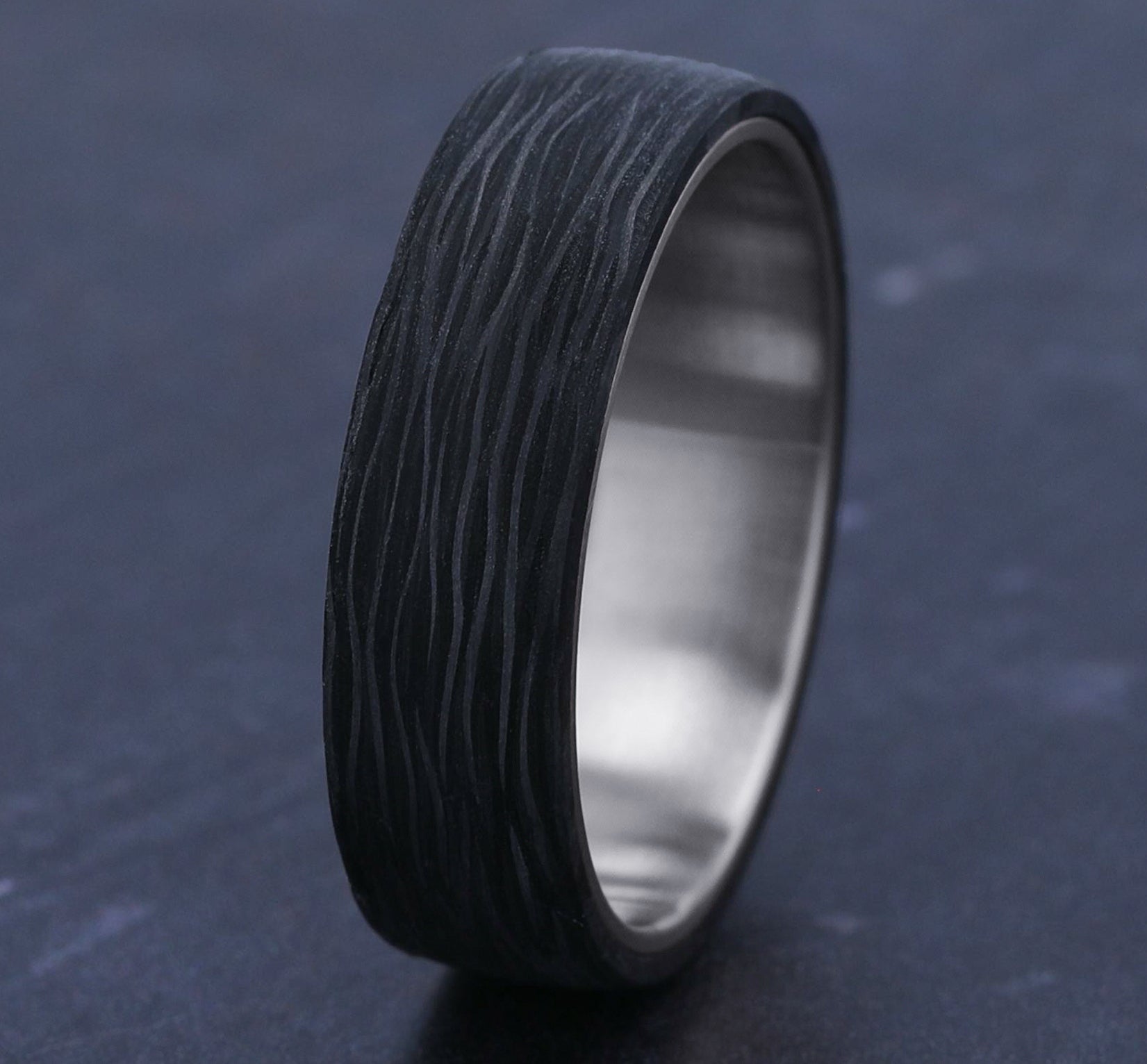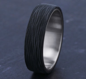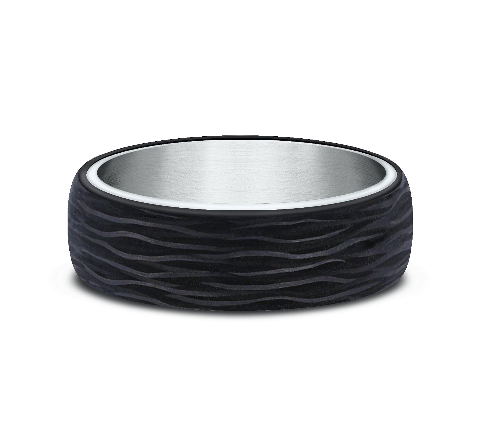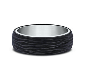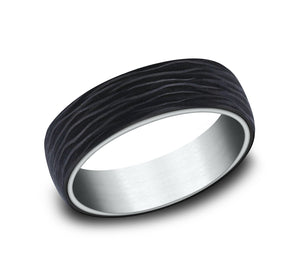 6.5mm, Comfort fit 14K White Gold and Forged Carbon Fiber Forged carbon fiber center
