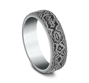 6.5mm, Comfort fit 14K White Gold and Grey Tantalum Unique Tamascus design