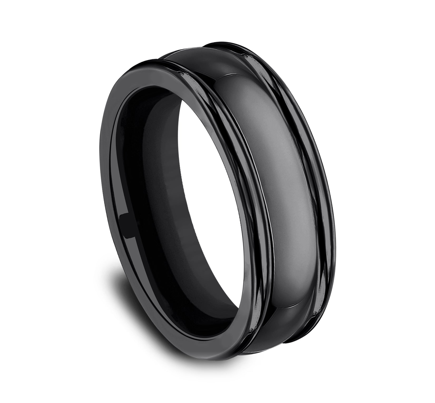 7.5mm, Comfort fit Black Titanium High polished finish, bold round edges